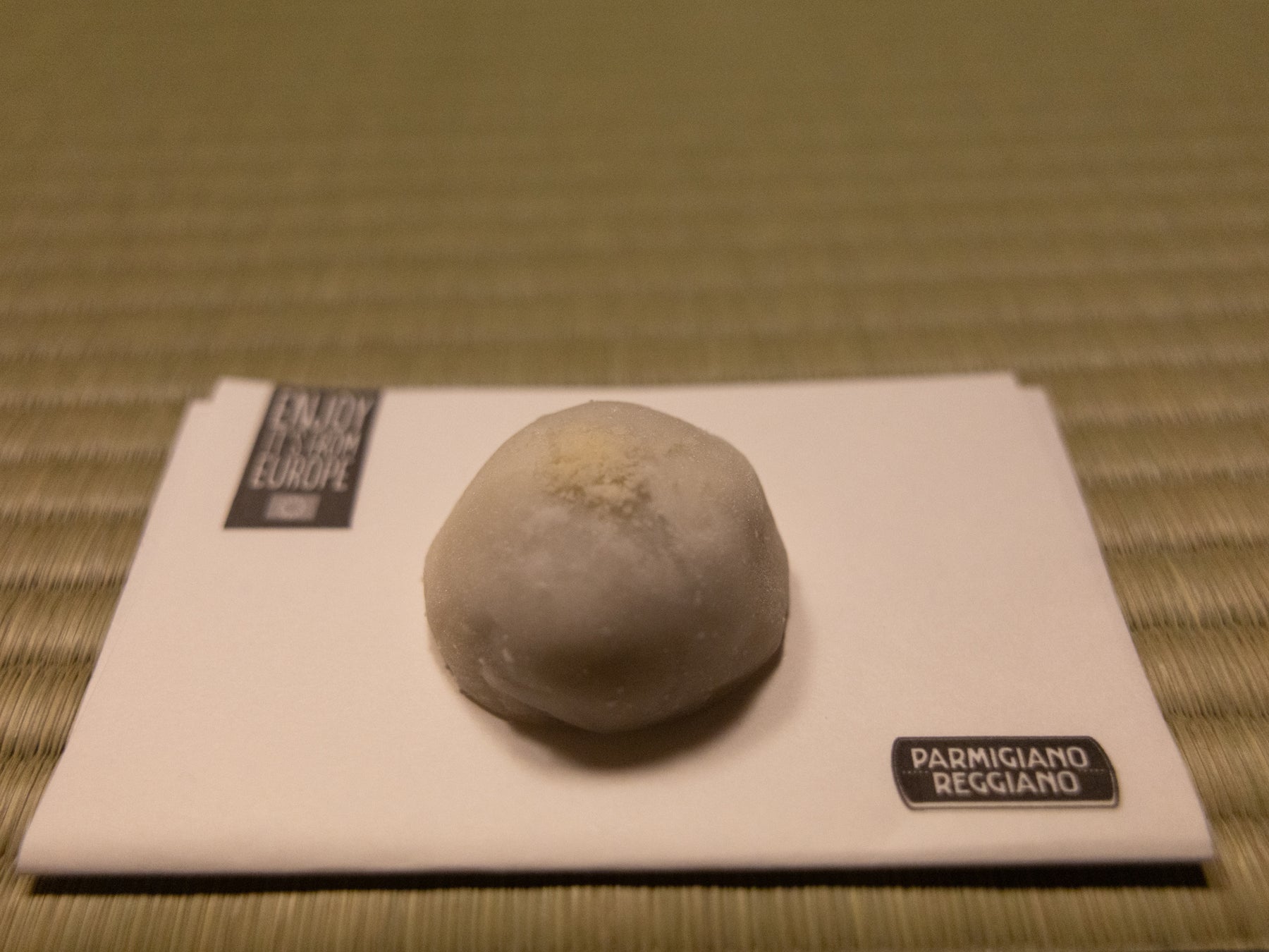 ・青山老舗和菓子店「紅谷」とのコラボで、パルミジャーノ・レッジャーノを使った茶菓子を提供