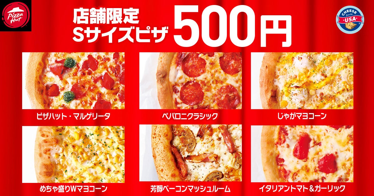 ※対象ピザ:「ペパロニクラシック」「じゃがマヨコーン」「イタリアントマト&ガーリック」「ピザハット・マルゲリータ」「芳醇ベーコンマッシュルーム」「めちゃ盛りWマヨコーン」