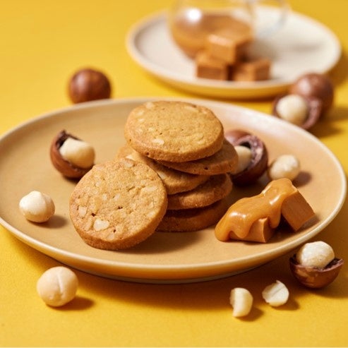 やさしい甘みのキャラメルと、香ばしいマカダミアナッツを組み合わせて焼き上げたクッキー。マカダミアナッツのごろごろとした食感を楽しめます。