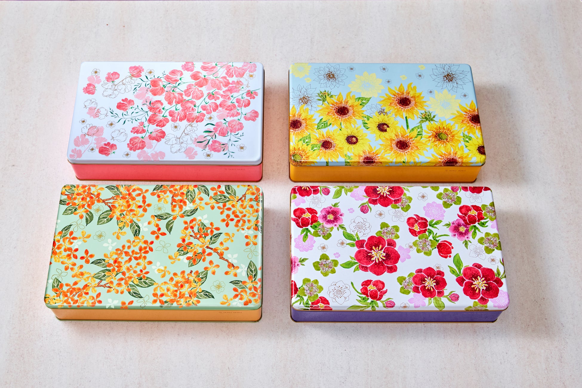 はかない繊維をより合わせ、しなやかな糸に仕上げていく営み、“紡ぐ”。友情や愛情も、はじめは曖昧で柔らかなものから時間をかけることで深まり、形をなしていきます。こうした人と人とのつながりのサイクルと自然界のうつろいを重ね合わせた『カドーシリーズ』のデザインコンセプトは、“花々で紡ぐ私たちの想い”。ヨックモックと日比谷花壇、それぞれの魅力を掛け合わせるため、約1年半にわたる議論を経て、2024年春にパッケージを一新しました。