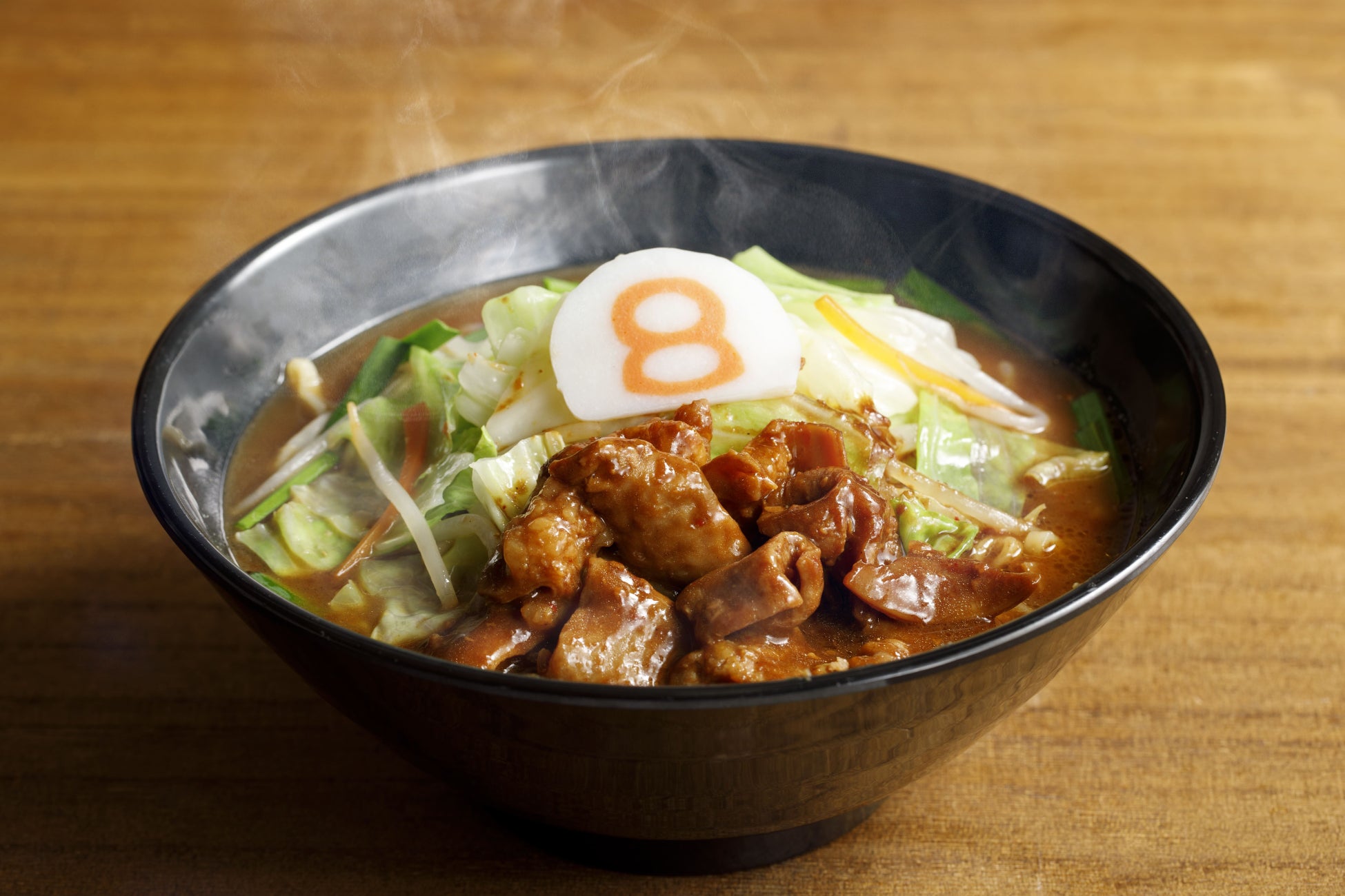 全国の8番らーめんにて、12月8日(月)から発売する「野菜牛もつ煮らーめん」は、30年以上も前からあるロングセラーのメニューです。特製味噌ダレでじっくり煮込んだ牛もつ煮の旨みが、8番らーめん定番のシャキシャキ野菜と太麺によく絡み、味噌らーめんスープに溶け込みます。寒さが増すこの時期にぴったりの、味わい深い一杯です。
