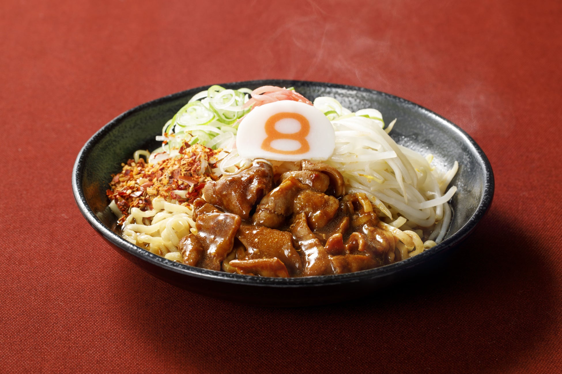 全国の8番らーめんにて、12月22日(月)から発売する「牛もつ煮唐麺(からめん)」は、昨年新発売し、大人気だったため今年も販売いたします。8番人気の定番メニュー汁なしまぜそば「唐麺(からめん)」のタレをベースに、特製味噌ダレでじっくり煮込んだ「牛もつ煮」をトッピング。特製スパイスと酢もやしの酸味と食感、が「牛もつ煮唐麺」のうまさを引き立てます。
