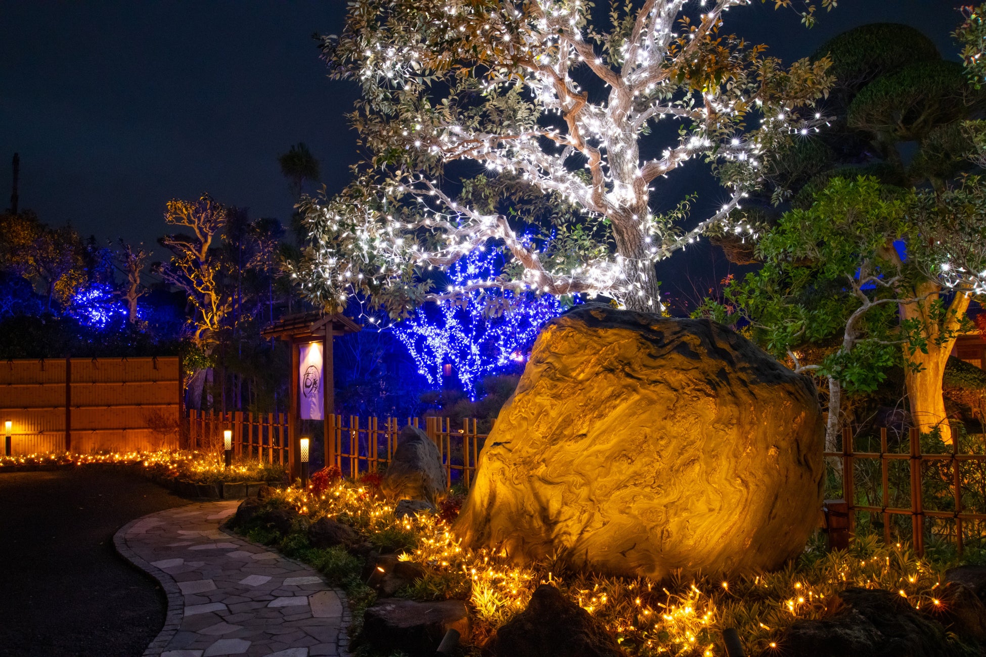 千葉県香取市・佐原。江戸の風情が残る水郷の街に佇む創作和フレンチレストラン『オーベルジュ・ド・マノワール吉庭(Kittei)』では、2025年12月3日(水)より、日本庭園を照らす冬季イルミネーションを開催いたします。