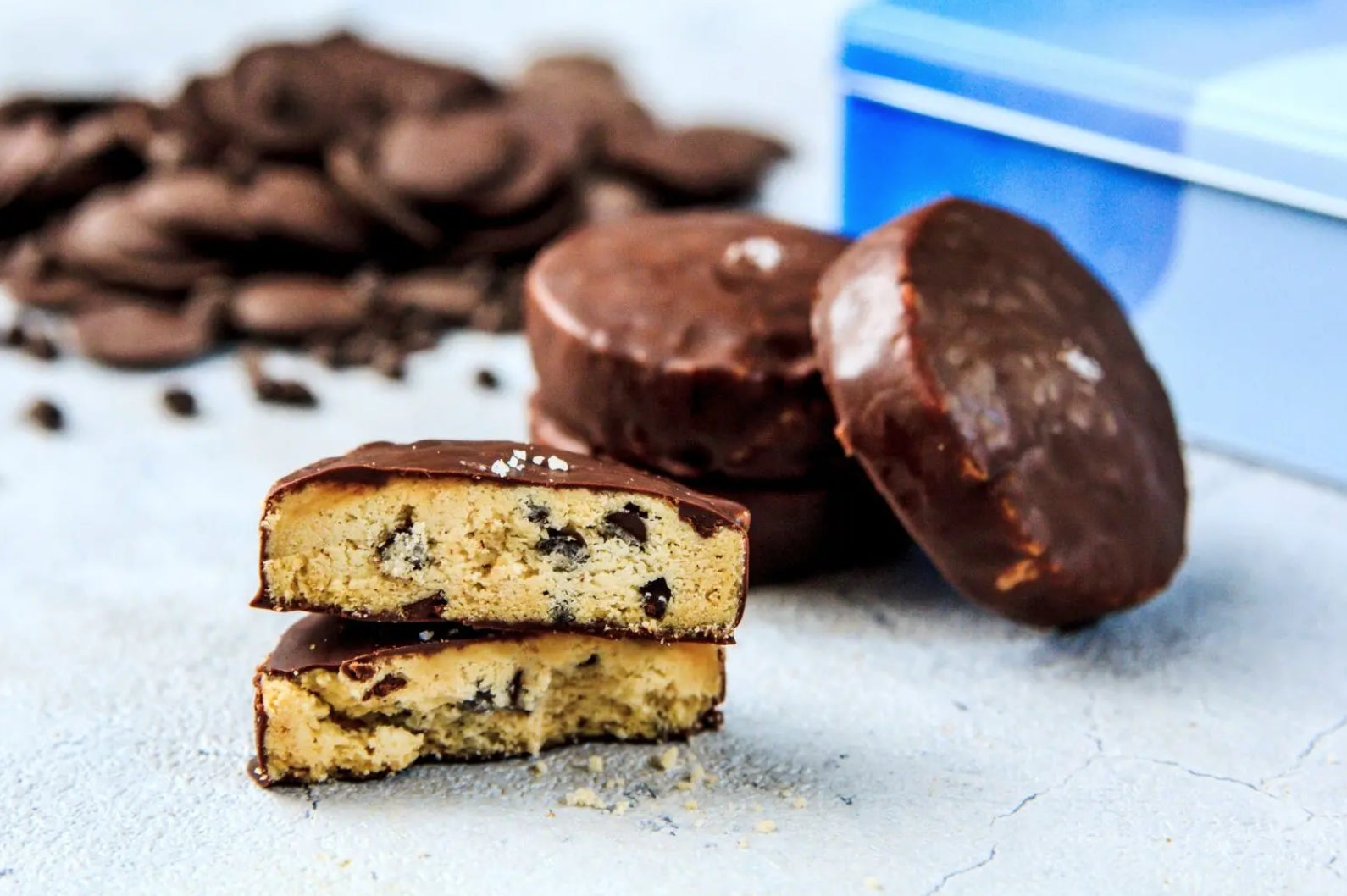チョコレートとクッキーが口の中で溶けていくような口溶けのいいクッキーです。ドミニカ共和国産カカオのチョコチップをたっぷり混ぜ込んだクッキーに4種ブレンドのチョコレートをコーティング。北海道産発酵バター、香ばしいアーモンド、バニラを混ぜ込んだクッキーはリッチな味わいです。