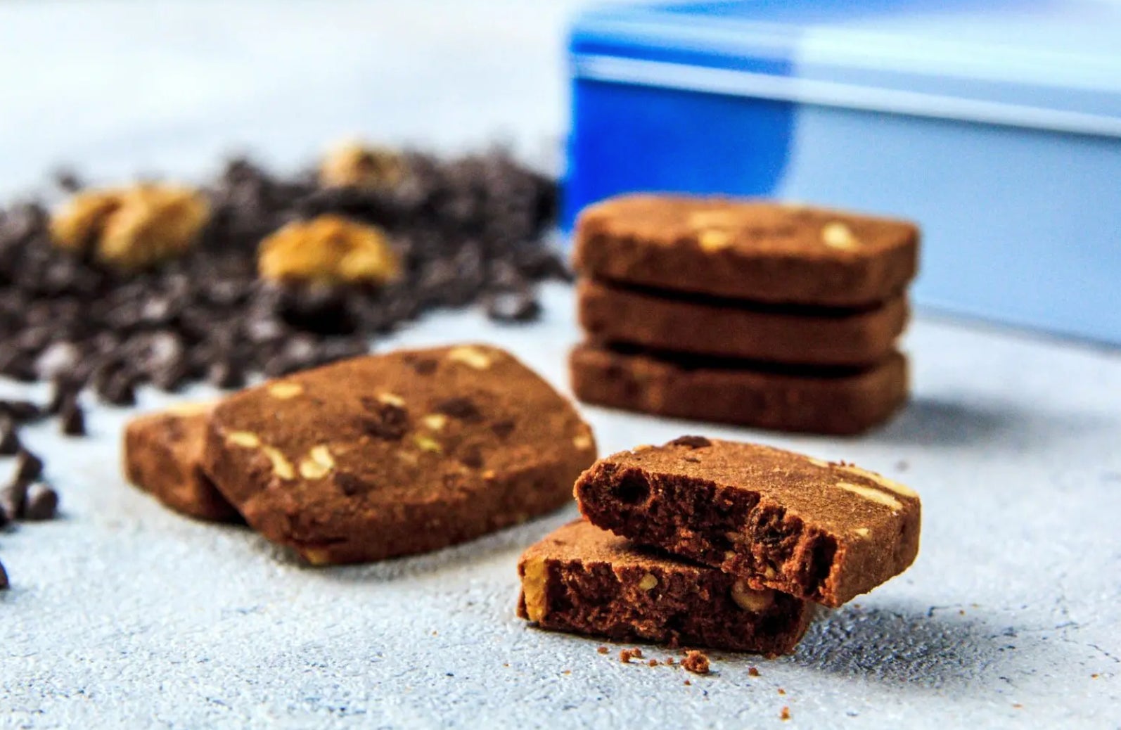 クルミとドミニカ共和国産カカオのチョコチップがたっぷり入ったコクのあるクッキー。有機カカオのココアパウダーをたっぷり使用。北海道産発酵バター、バニラ、アーモンドを配合したリッチな味わいの生地にビターキャラメルで深みを加えています。