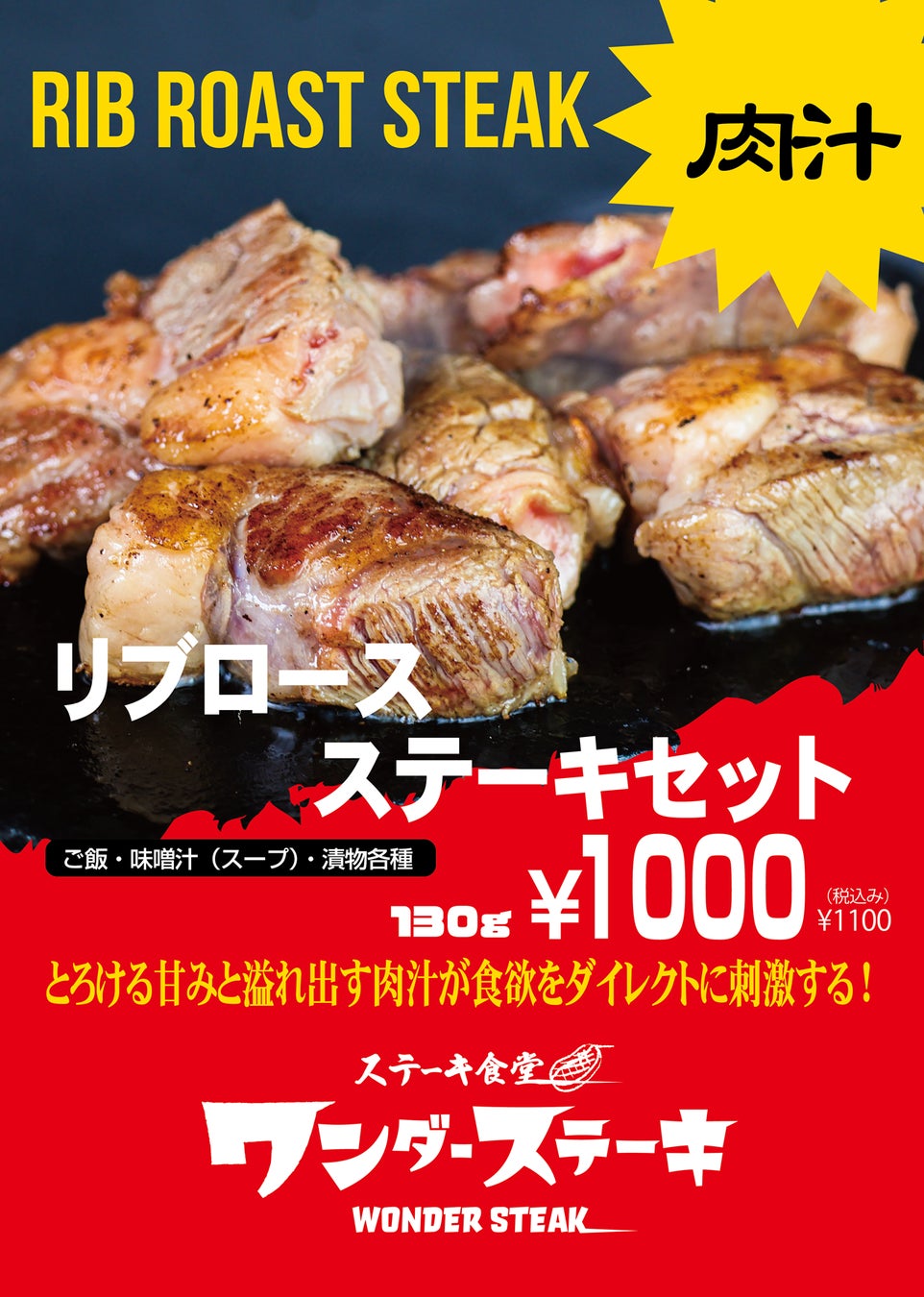 2位は、ワンダーステーキのロングセラー商品となる「リブロースステーキ」。ワンダーステーキの中で人気を博し続け、今年もとろけるハラミの登場により、2位にランクダウンしましたが、その実力は健在。尚、リブロースは、更にパワーアップした形で皆様にご提供致します。