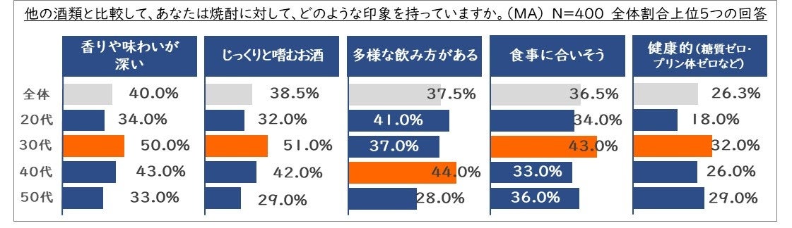 ・20代男女の焼酎に対する印象は、多様な飲み方がトップ