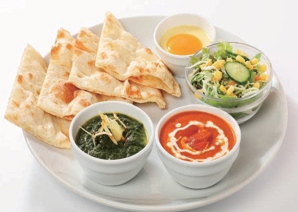 ・バターチキン・サグパニール・サラダ・ナン・マンゴープリン