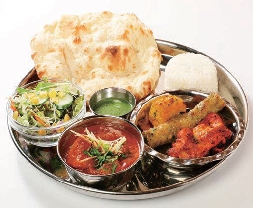 ・バターチキン・サグチキン・キーマカレー・日替わりサブジ・サラダ・チキンティッカ・チャツネ・ライス・ナン