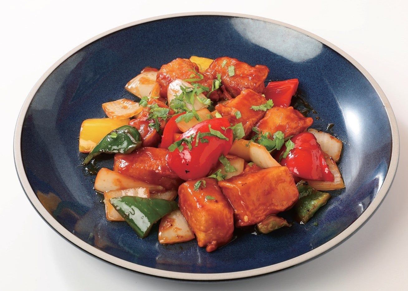 チリチキン 858円 揚げたチキンと野菜を甘辛く味付けしたインドの家庭料理。