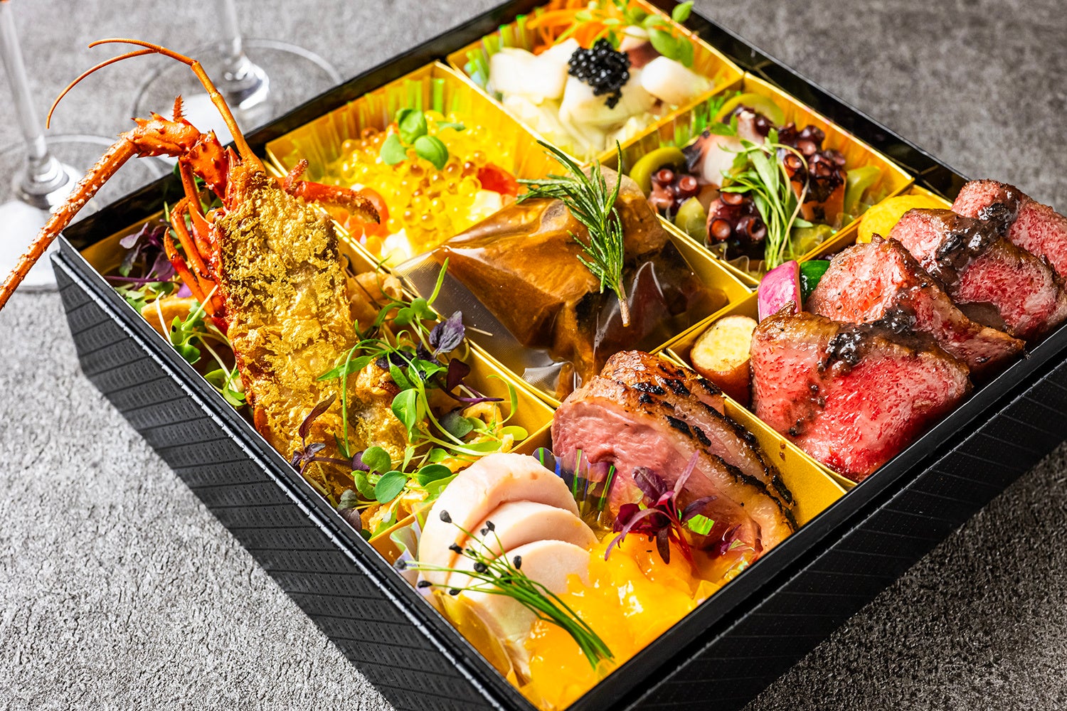ダノイ高輪店では、年始限定でイタリアンの贅を美しく敷き詰めた「ダノイ特製 美食の小箱 〜Cofanetto gastronomico〜」をご用意しております。約2名様分のお料理を詰め合わせた数量限定商品です。予定数に達し次第受付終了となりますので、お早めにご予約ください。