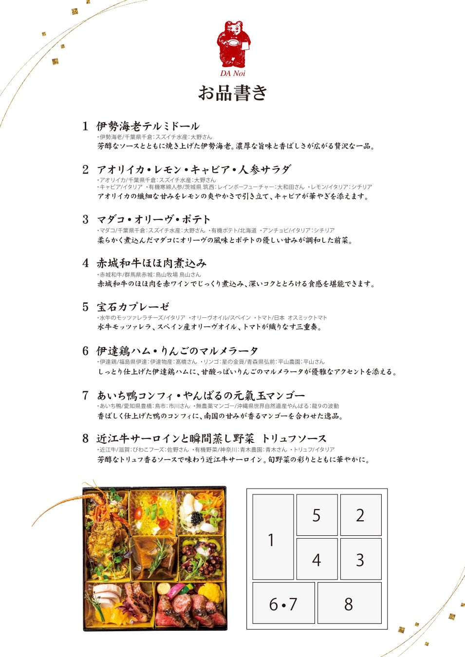 ■年始限定テイクアウト「ダノイ特製 美食の小箱 〜Cofanetto gastronomico〜」のご案内
