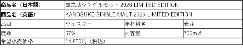 /鹿児島県日置市)は、2026年2月25日に「嘉之助シングルモルト 2026 LIMITED EDITION」を発売いたします。