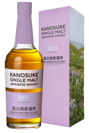 2026年版では、春の海辺の穏やかな潮風や、可憐なハマゴウの香りを、カスクフィニッシュで表現しました。「シングルモルト嘉之助」のベースとなるバーボン樽熟成原酒をアップルブランデー樽で、そしてKANOSUKEのDNAともいえる焼酎リチャー樽熟成原酒を白ワイン樽でそれぞれ後熟し、この二つをキーモルトとして採用。白ワイン樽由来のオレンジの花のような軽やかな香りと、アップルブランデー樽がもたらすゆず餡の様な、爽やかな果実感、丸みのある甘やかさが広がり、グレープフルーツと潮風の心地よい余韻が長く続きます。さらに、複数のシェリー樽原酒とごく少量のピーテッド原酒を重ねることで、味わいが引き締まり、奥行きや立体感が生まれました。今回の仕上げには、新たに導入した「スロー・ディリュージョン」の技法を取り入れ、段階的にゆっくりと加水することで、よりメローでやわらかな口当たりを実現しています。嘉之助蒸溜所が建つ吹上浜の春の海辺に思いを馳せて、静かな春の宵にそっと寄り添うように楽しめる一本。