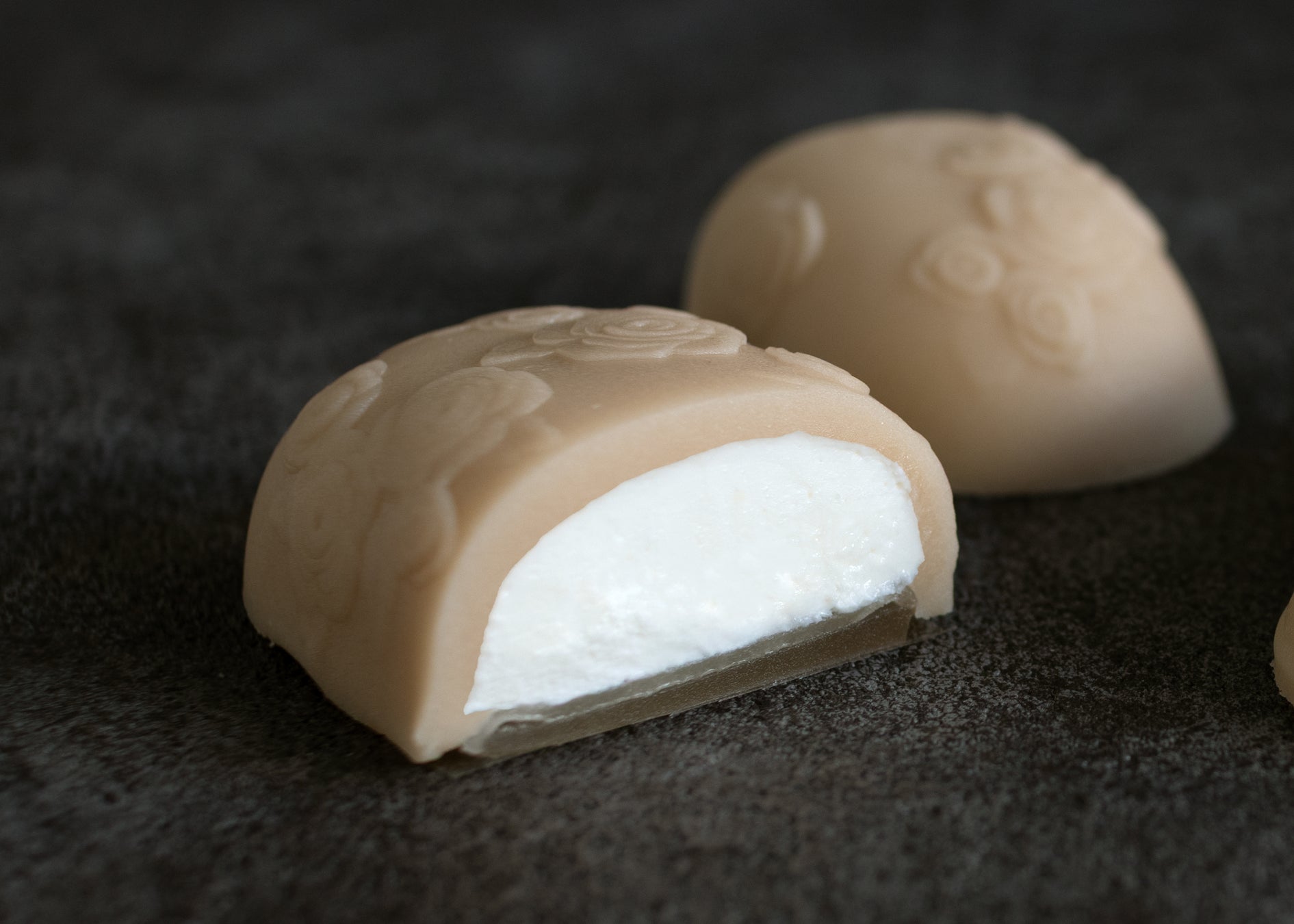 この和素材による多層構造は、未体験の食感のパラドックスを生み出します。ベルベットのような滑らかな練り切りがまず舌に触れ、次に高濃度生クリームの芳醇な冷たさが広がり、最後に現れる求肥と羊羹の層が「もちもち×つるん」の強い食感のコントラストで口内を占有します。菓子を「触れる美術品」へと昇華させる、革新的な食の体験です。