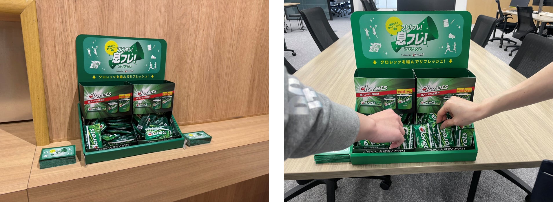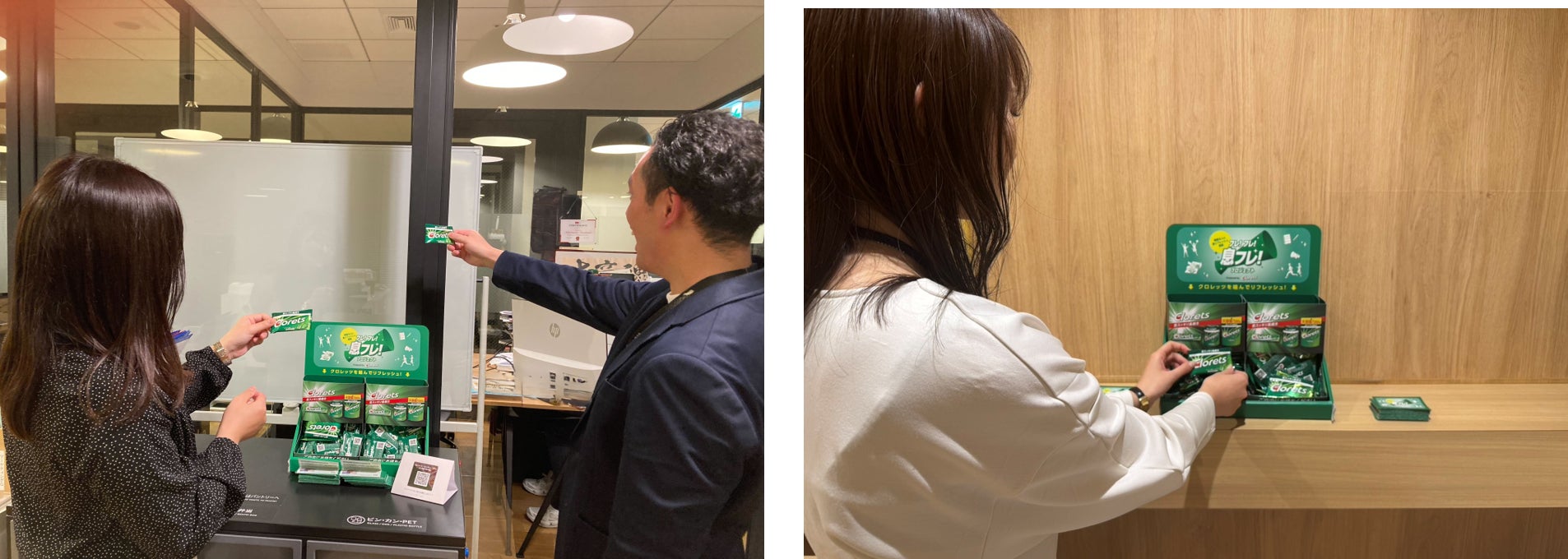 本プロジェクトの取り組みの一つとして、社員の生産性向上や健康経営を目指す企業3社に、 オフィスやワークスペースでのクロレッツのサンプリングを実施しました。その結果、多くの方から、業務の合間にガムを噛むことを取り入れることで、リフレッシュや気分転換のきっかけになったという声をいただきました。