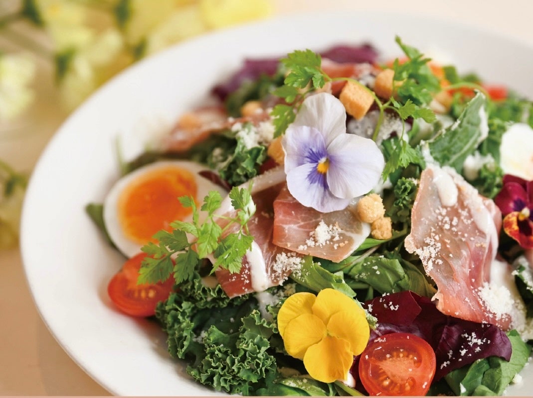 リニューアルに伴い、モーニングタイムを新たに導入。淡路島製麺の生パスタや彩り豊かなサラダを中心とした“選べるモーニングメニュー”を新たに提供いたします。パスタは「ボロネーゼ」「ポモドーロ」「海老のレモンクリーム」の3種類、サラダはエディブルフラワーをあしらった華やかなサラダなど3種類をご用意。いずれも 各1,200円(税別) にてお楽しみいただけます。光がやさしく差し込む朝の時間帯に、花や緑に囲まれた店内やテラスの空間で、1日の始まりを軽やかに彩ります。