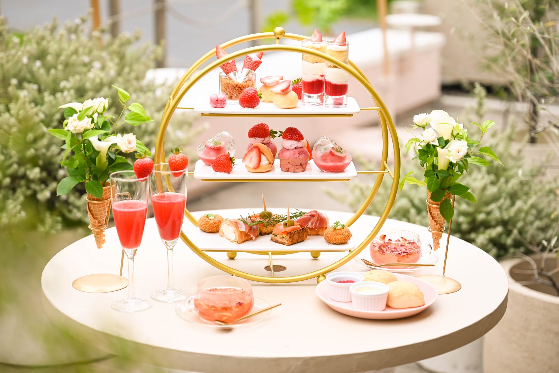 特にお客様にご好評をいただいているパンブッフェ(2,710円/税別)もメニューを一部リニューアルし、ディナータイムまで営業を延長いたします。メインはパスタ、サラダ、オムライス、ハンバーグ全7種の中から1つ選んでいただくと、10種類以上のパンブッフェを楽しんでいただけます。ドリンクのフリーフロー、季節のスイーツを楽しめるデザートブッフェもランチ料金の中に含まれている満足感の高いブッフェです。また、当店人気のアフタヌーンティー(4,980円/税別〜)も、お客様のご要望により提供時間をディナータイムまで延長いたします。常時提供している「いちごのアフタヌーンティー」に加え、シーズナルのメニューも提供しておりますので、ぜひご賞味ください。