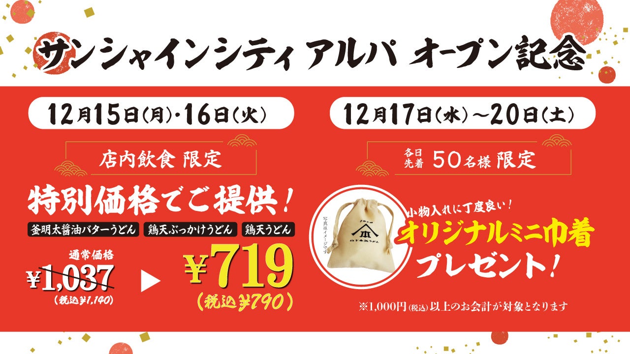 ■「山下本気うどん サンシャインシティアルパ」オープン記念キャンペーンについて