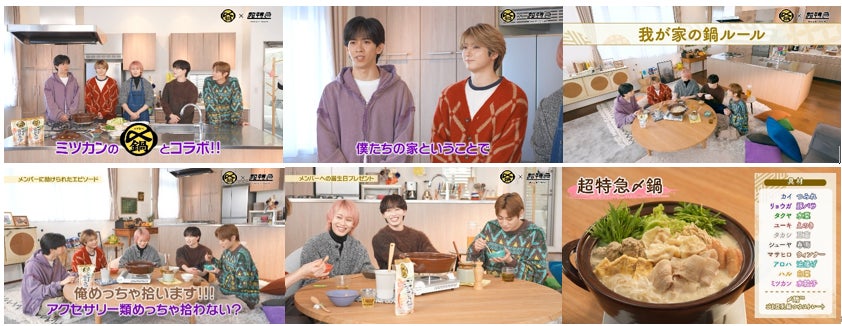 舞台は、超特急9人が共同生活を送る“お家”。〆鍋ごま豆乳鍋つゆにメンバーそれぞれの好きな具材を入れた“超特急〆鍋”パーティーを開催。「メンバーとの鍋エピソード」や「今年の思い出」といった振り返りトークを、「〆鍋」を囲みながら和やかに語り合います。