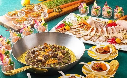 当日は、通常のクリスマスブッフェメニューに加え、スペシャルディッシュとして「フォアグラと柿のソテーをのせたブリュレ(お1人さまにつき1皿・大人の方限定)」をご提供いたします。