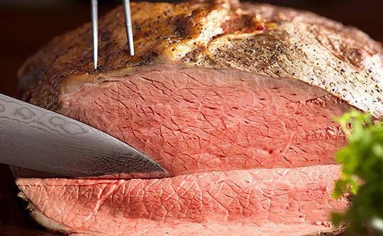 お客様の目の前で仕上げる看板メニュー「ローストビーフ」