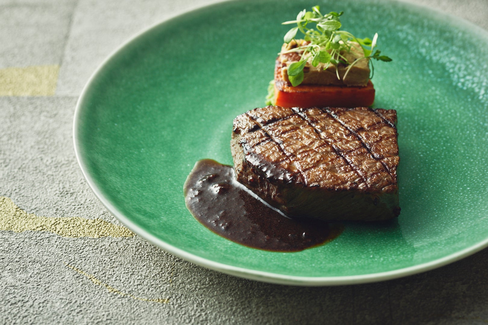 薪火で丁寧に焼き上げた和牛に、トリュフの香り豊かに仕立てたクラシックフレンチのソース「ペリグーソース」を合わせ、深いコクと余韻を楽しめる冬のメインディッシュとして仕上げました。