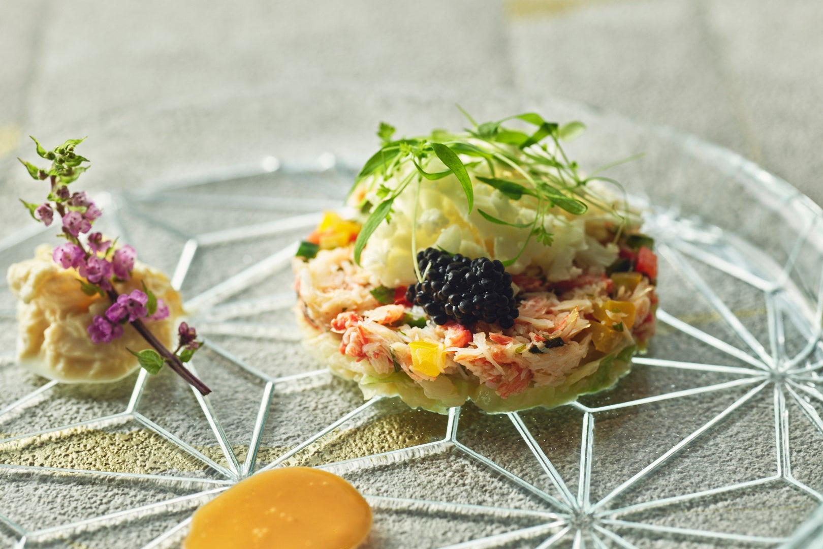 冬に甘みの増すキャベツに、繊細な旨味のズワイガニを合わせた前菜。