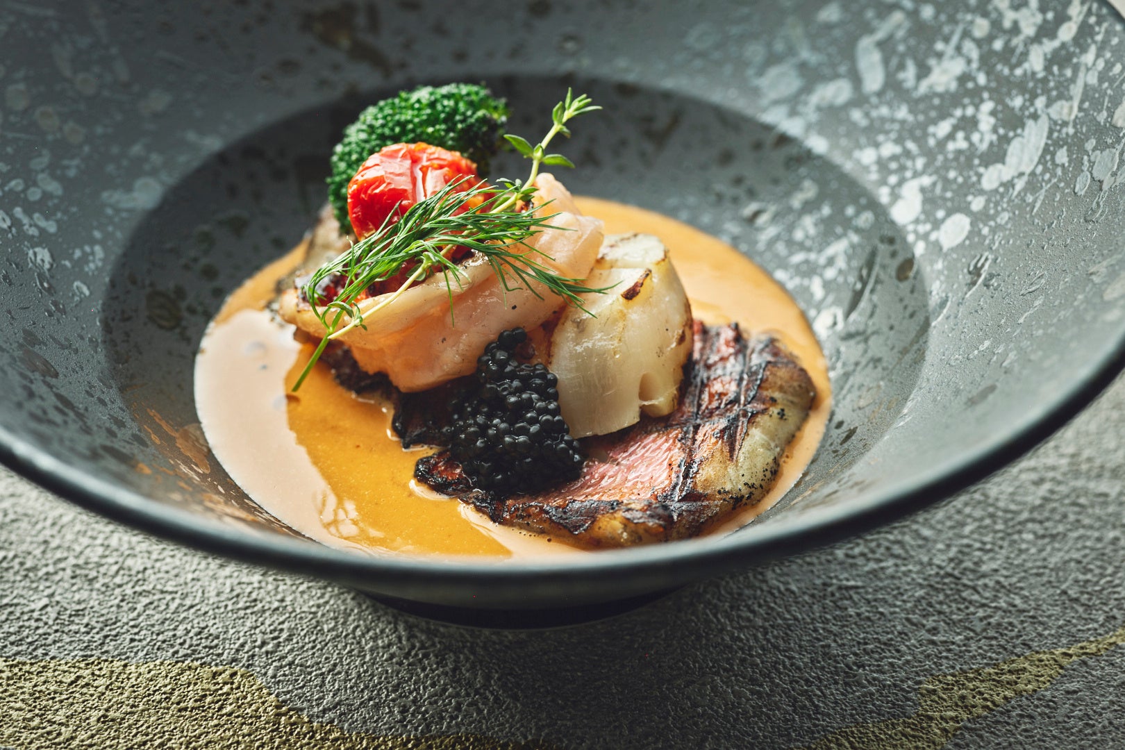 香ばしく焼き上げた金目鯛が、魚介の旨味を凝縮したスープに溶け合う冬のハイライト。ぜひ味わっていただきたい特別な一皿です。