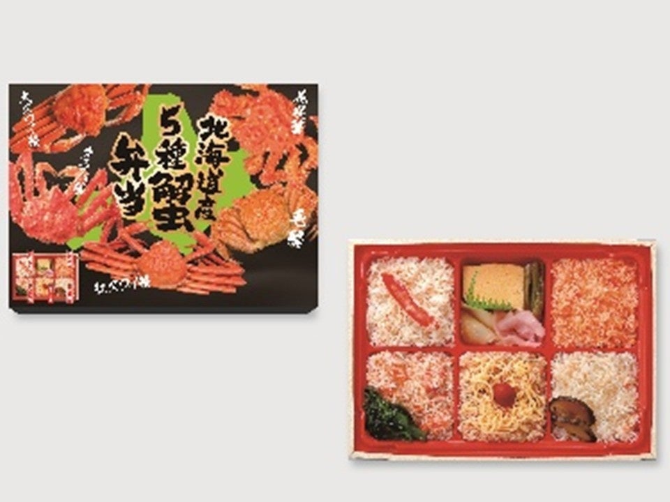 北海道産の花咲ガニ、タラバガニ、毛ガニ、大ズワイガニを1度に食べられるお弁当です。