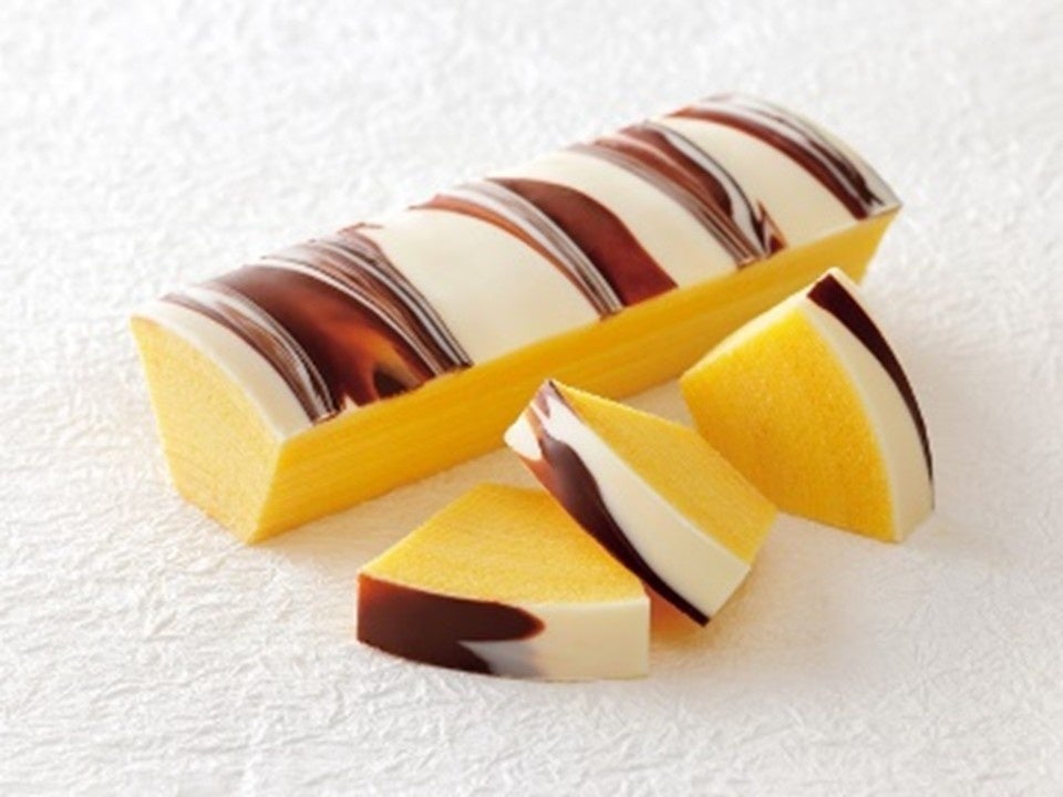 白樺の木肌をミルクチョコレートとホワイトチョコレートで表現した「しっとり系のバームクーヘン」。使用するバター、砂糖は全て北海道産を使用したこだわりの逸品。