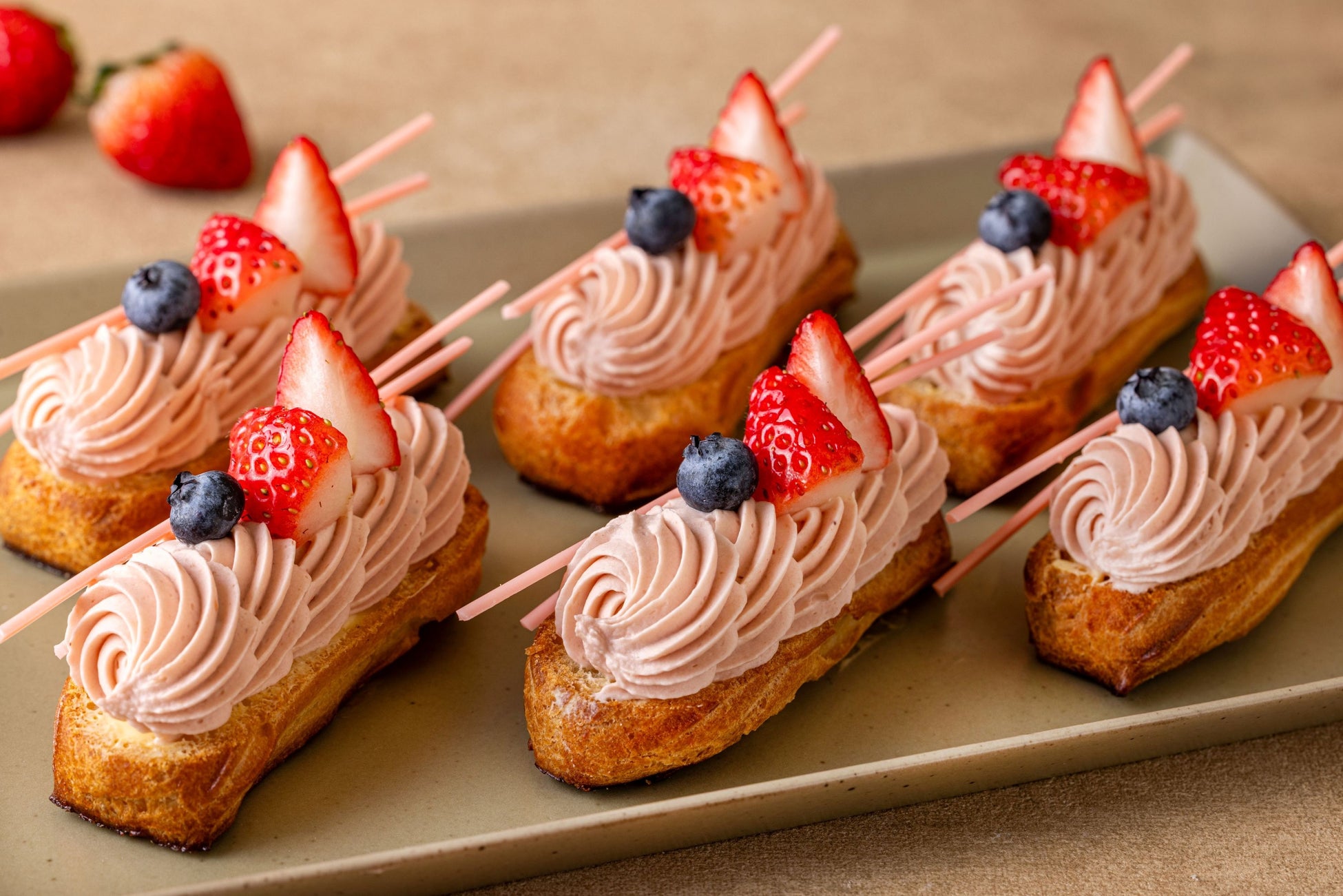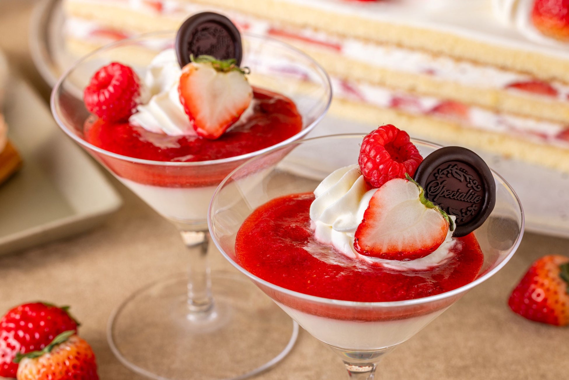 見た目にも華やかで、味わい豊かな苺の季節が今年も到来。新ペストリーシェフ 佐藤 浩一が手掛ける、旬の苺を主役にした多彩なストロベリースイーツを存分にお楽しみいただけます。王道の「苺のショートケーキ」は、北海道産生クリームを入れて焼き上げたこだわりのしっとりしたスポンジと、フレッシュな苺の甘みと酸味が絶妙に重なり合う逸品です。カスタードとバタークリームを合わせたクリームと、アーモンドプードル入りの風味豊かな生地に、苺の酸味が調和したフランス伝統のケーキ「フレジエ」は、苺の美しい断面が特徴。フォトジェニックな淡いピンクが目を引く「苺とピスタチオのムース」は、苺の爽やかな酸味とピスタチオの濃厚な香ばしさが優しく溶け合う一品。スペシャルアシェットデセールには、サクサクした食感のパイ生地と甘酸っぱさが人気の「苺のミルフィーユ」をご用意。繊細な美しい盛り付けも、心を華やかにします。さらにスイーツの合間にお楽しみいただけるライトミールも充実。じっくり煮込んだホテルメイドの「ビーフシチュー」やアツアツの「ドリア」など、多彩なメニューはスパークリングワインやサングリアとともに、上質な夜の時間を演出いたします。
