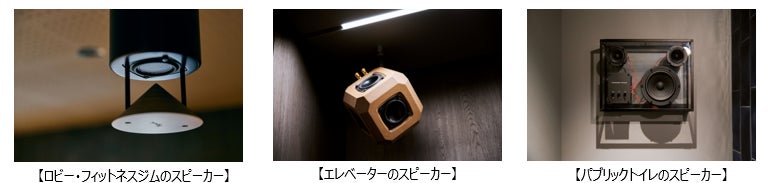 ・国産メーカー「TAGUCHI」によるオリジナルスピーカーを採用し、レストランやフロントロビー、エレベーター、パブリックトイレ、フィットネスジムなど、空間ごとに最適な音響を追求したカスタマイズを施して設置しています。