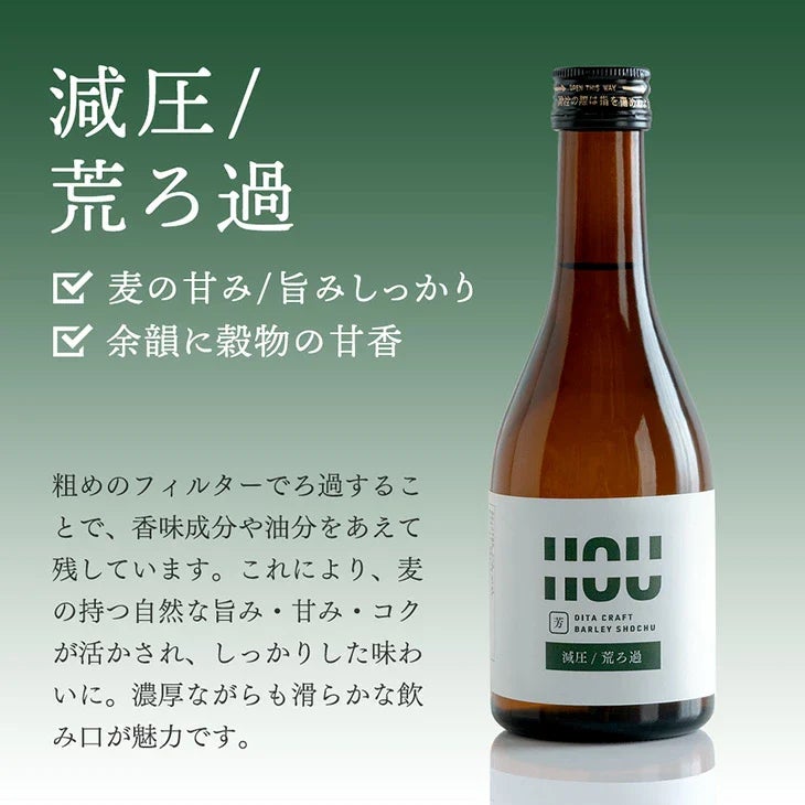 常圧(白麹):穏やかな香ばしさとまろやかな口当たりが特徴で、佐伯産麦の優しい甘味が感じる