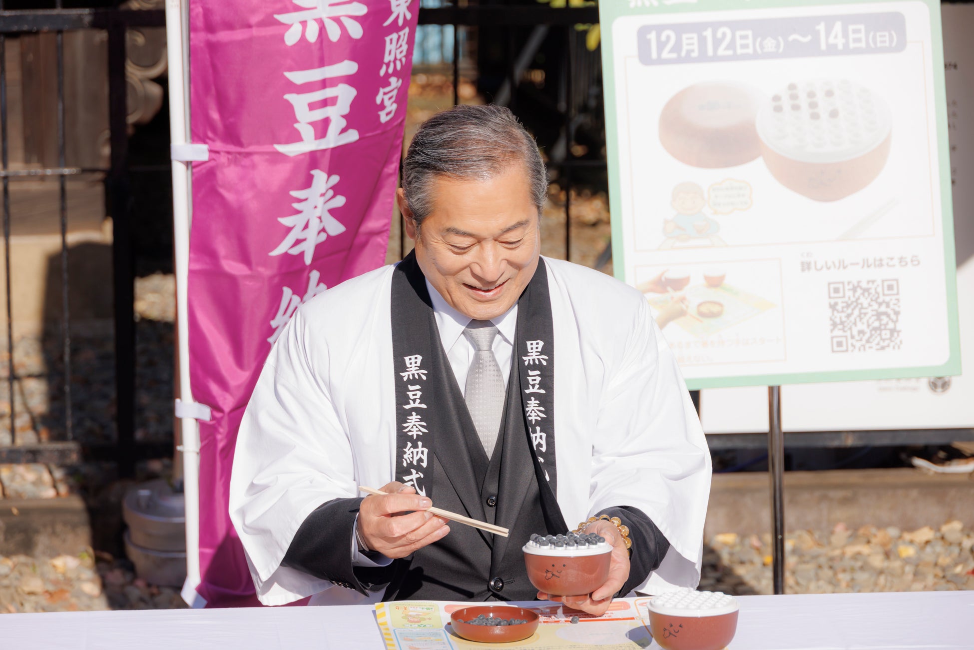 12 月12 日(金)の令和七年「黒豆奉納式」後、上野東照宮のご参拝者を対象として、12 日(金)~14 日(日)の期間「黒豆のふるまい」「黒豆つかみゲーム」を実施いたします。