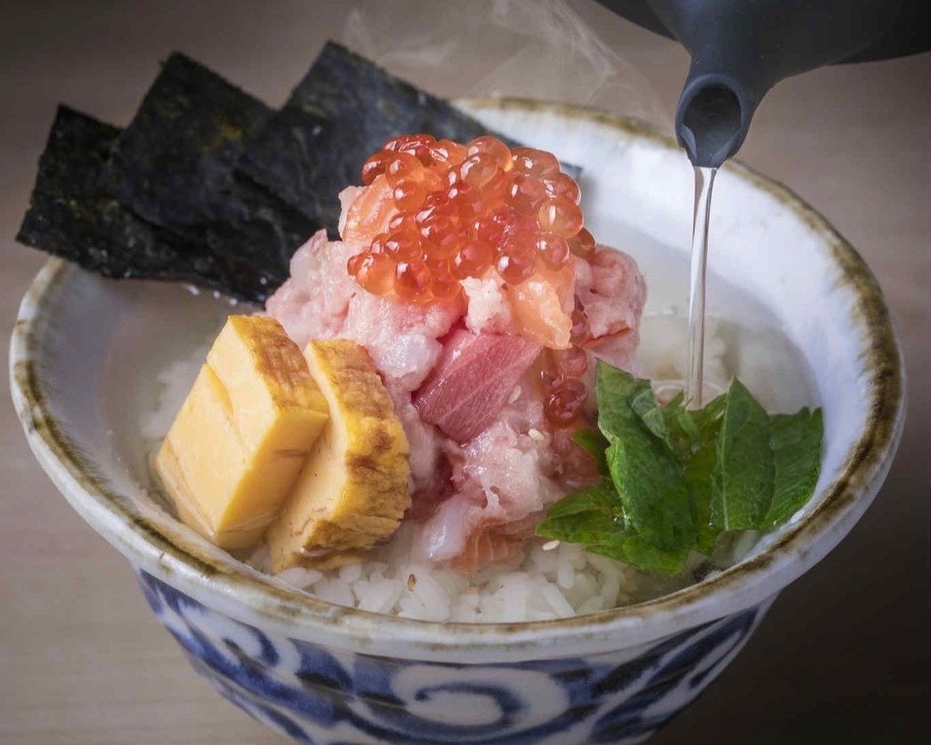 HAKUのスペシャリテ。途中から出汁をかけ、“海鮮茶漬け”として二度お楽しみいただけます。