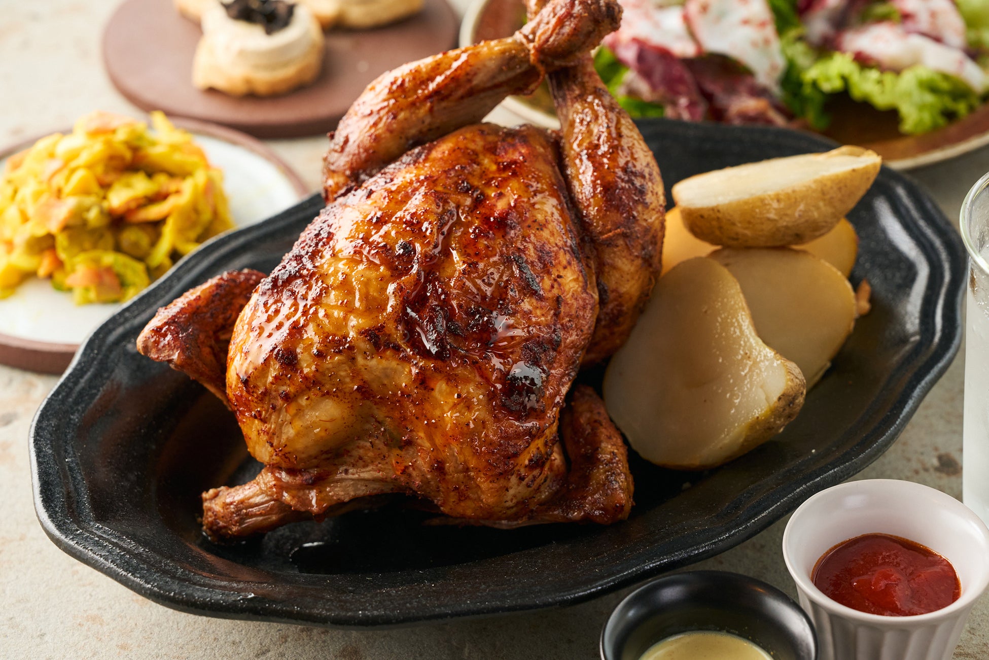 ■本格ロティサリーマシンで焼き上げる丸鶏・豚・季節野菜と、50種以上のクラフト焼酎のペアリング