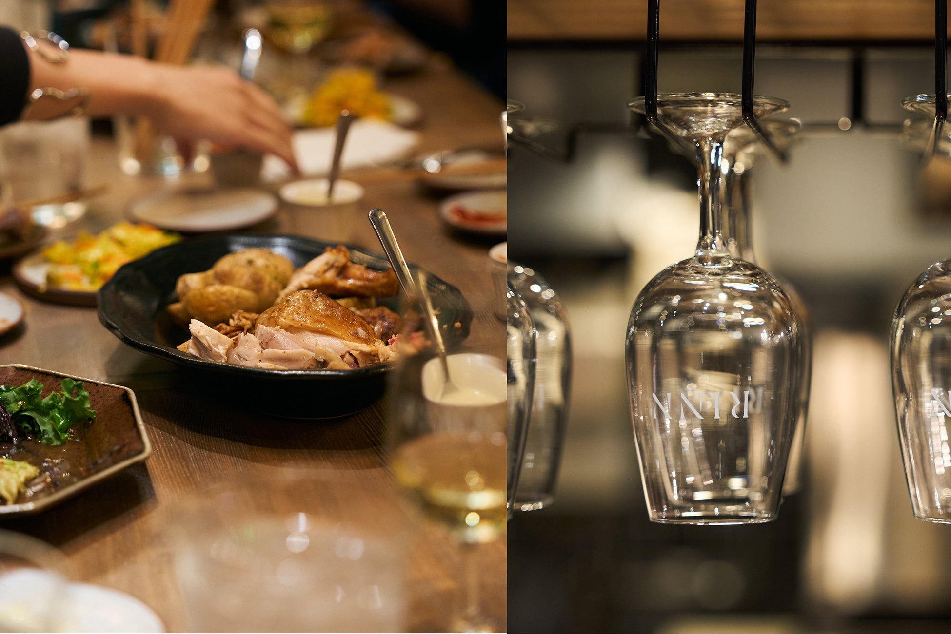 「RINN」の、柔らかな灯りと開放感あふれる空間で、<ロティサリーとクラフト焼酎>という新たな食体験をお楽しみください。
