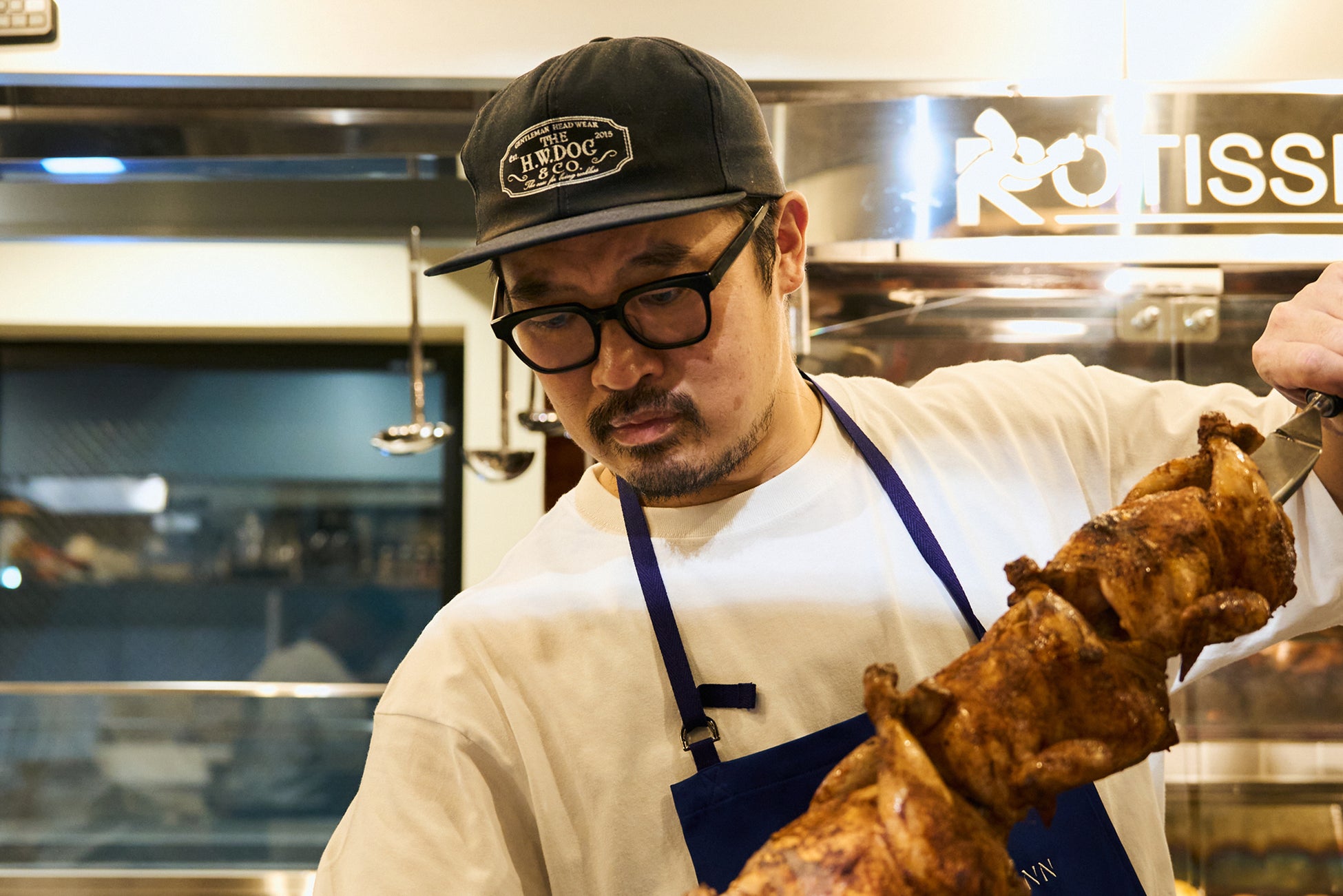 「RINN」の統括シェフは、ミシュランガイド東京2018でビブグルマンに選出された気鋭の料理人・亀谷剛。フランスで経験を積み、各国料理にも精通する柔軟な発想が、ロティサリー×クラフト焼酎という斬新な体験を生み出しました。