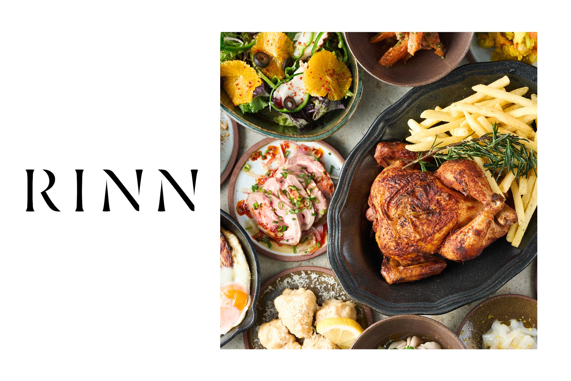 4店舗目となる「RINN」のテーマは<ロティサリーとクラフト焼酎>。本場・フランス製のロティサリーマシンによる精密な火入れで、とびきりの香ばしさと旨味を引き出した丸鶏・豚・季節野菜を、全国から集めた50種以上のクラフト焼酎と共に提供します。