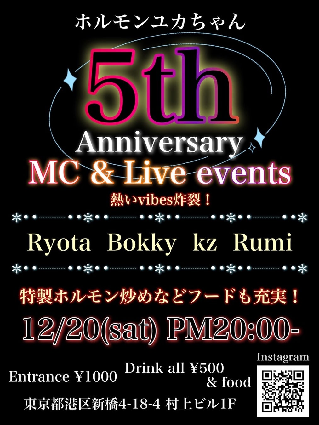 『豚一筋17年。価格以上のこだわりで無限の感動と、あふれる笑顔を』をコンセプトに、やきとん・豚ホルモン焼きに特化した飲食店【ふじ嶋グループ】を展開する株式会社Infinity8(本社:東京都港区、代表取締役:藤嶋健一)は、コロナ禍開業から5周年という大きな節目を迎えた豚ホルモン焼専門店「ホルモンユカちゃん新橋店」にて、2025年12月20日(土)に「昼の部:周年特別企画わんこホルモン」「夜の部:HIPHOP Night」の2部構成による特別アニバーサリーイベントを開催いたします。2020年12月、コロナ禍の逆風の中で誕生した同店。開業から多くの皆様に支えていただいた5年間の感謝と「これからも常識にとらわれず挑戦し続ける」という決意を込め、食とエンターテインメントを融合させた一日限りの特別営業を行います。