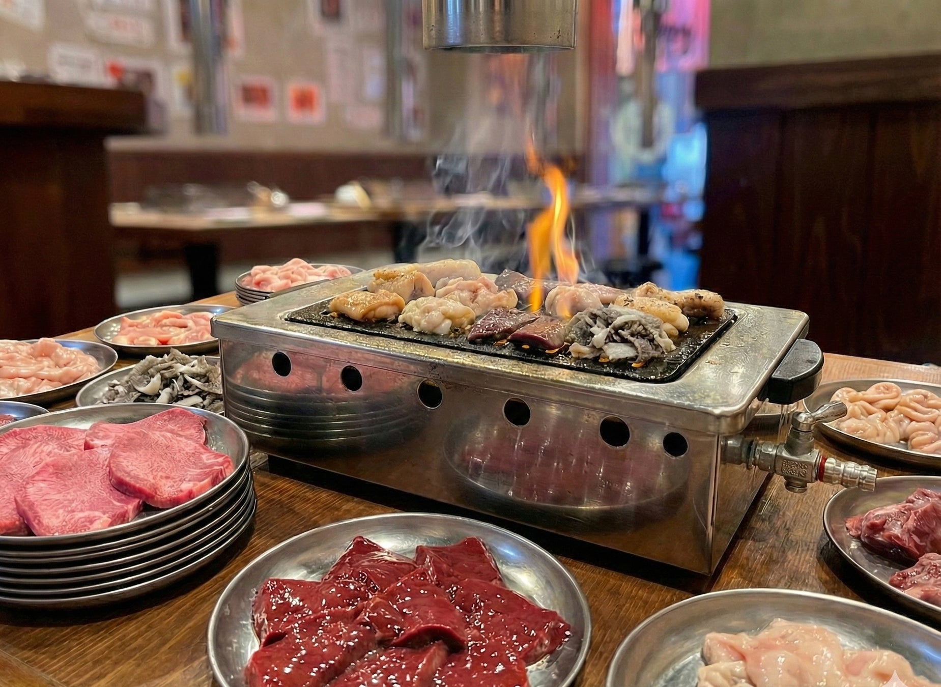 通常は落ち着いた「焼肉スタイル」で豚ホルモンを提供する同店ですが、この日は昼と夜で全く異なる顔を見せます。
