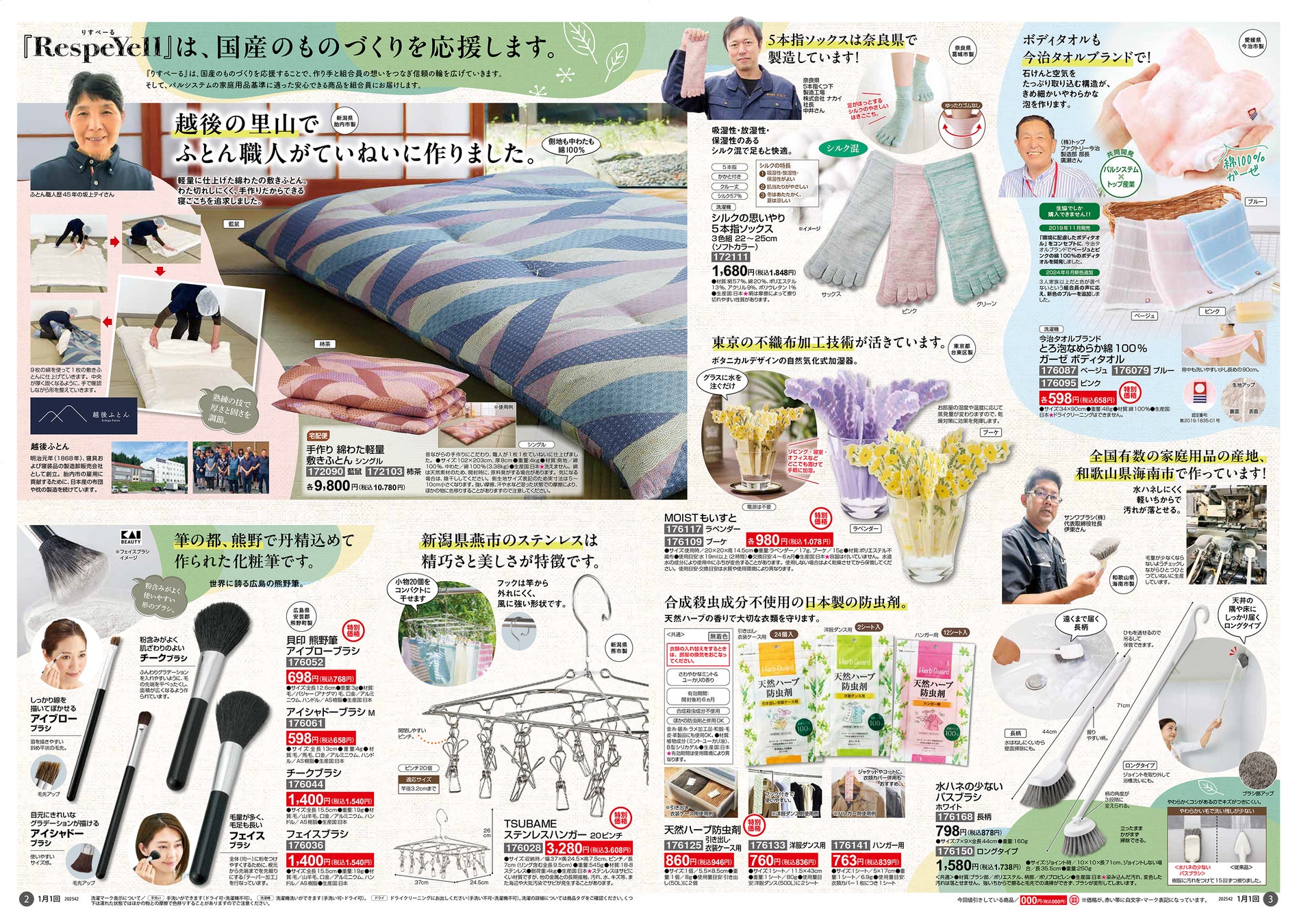 カタログ誌面では、生産現場を取材し、国産メーカーの職人の技や文化、作り手のもの作りへの思いを利用者に伝えます。作り手が利用者の声を聞きながら共に開発した商品なども紹介し、お互いの思いをつなぎます。季節を楽しむ商品から長く愛用できる定番品まで、幅広い品揃えで利用者の暮らしをサポートします。