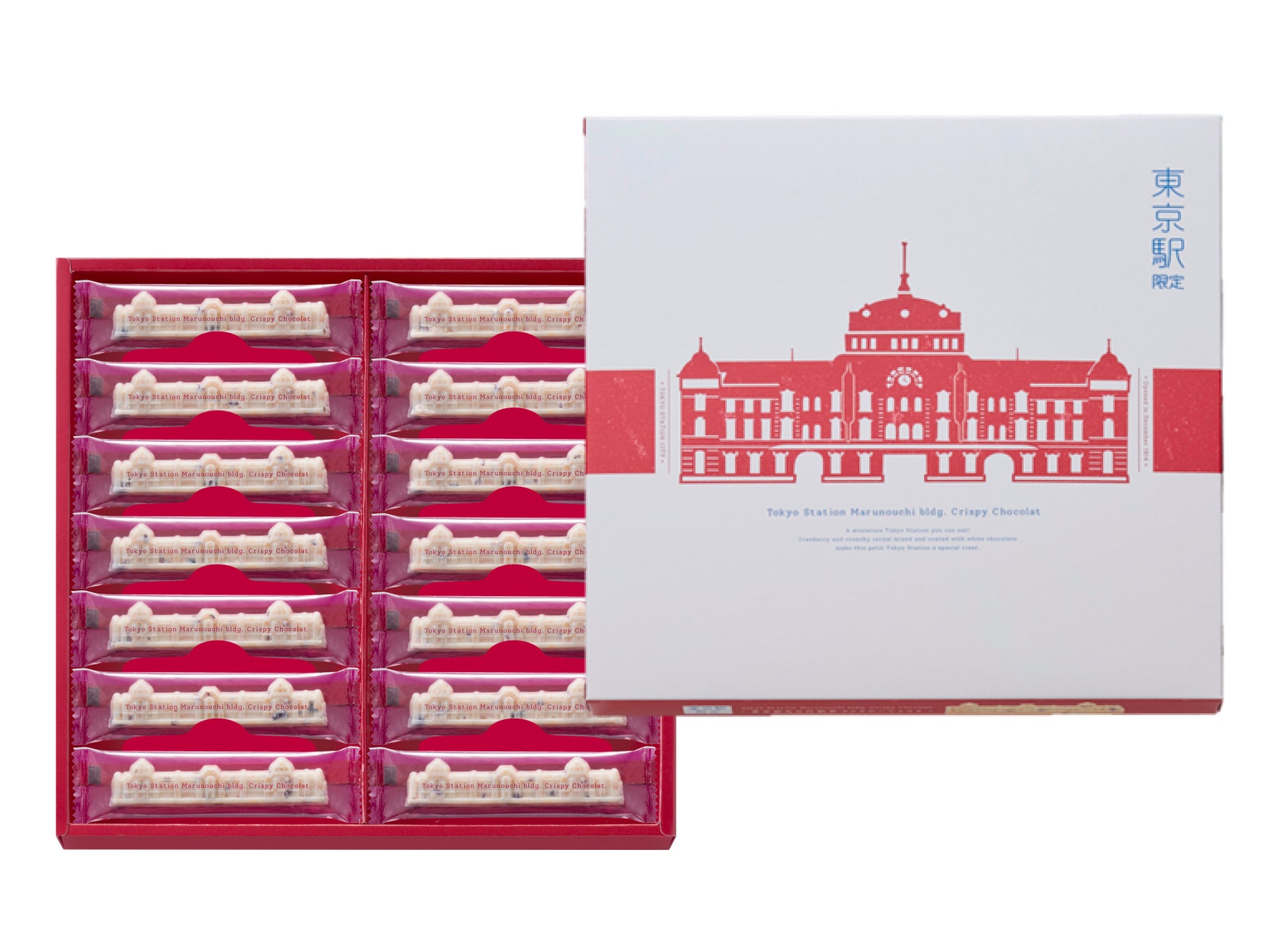 神戸発祥の老舗洋菓子ブランド「モロゾフ」が手掛けるクリスピーショコラは、「HANAGATAYAグランスタ東京中央通路店」「HANAGATAYA東京南乗換店」で販売している商品です。駅舎をかたどったサクサクのシリアルに、クランベリー入りホワイトチョコをコーティングし、軽やかな食感と甘酸っぱい味わいがクセになるおいしさ。洗練されたパッケージで小分けのお土産にもぴったりです。