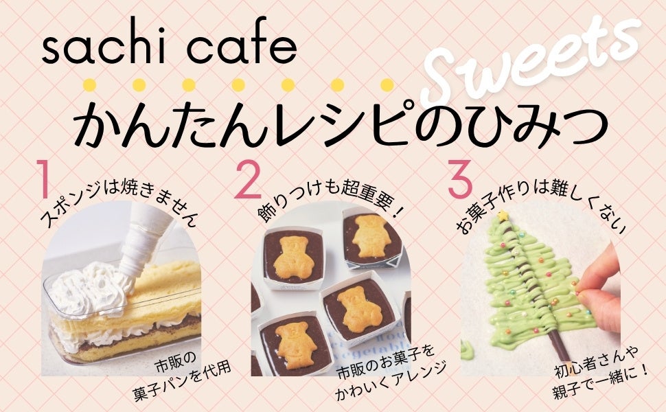 “誰でも作れる簡単かわいいお菓子”をコンセプトに、難しい作業工程がないお菓子のレシピをSNSで発信する、sachi cafeさん初のレシピ本です。