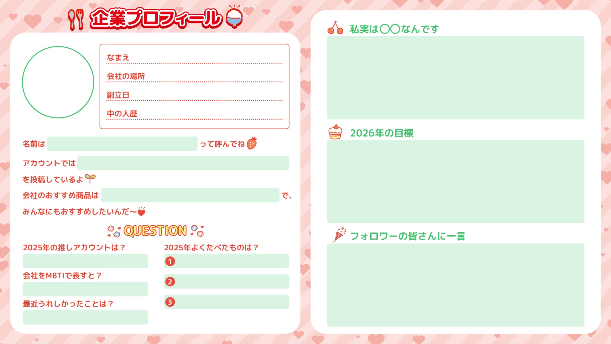 2025年も残りわずかとなる年末に合わせ、本企画は“プロフィール帳形式”のテンプレートを使い、中の人が自身の企業公式アカウントから一年を振り返って投稿する取り組みです。