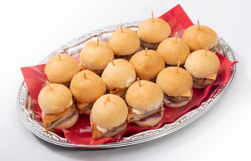 本プランは、会話の妨げにならないフィンガーフードをはじめ、見た目も華やかでかわいらしいミニチーズバーガー&フィッシュバーガー、新年のメッセージ付きプチケーキなどを揃えた特別仕様です。オフィスで手軽に準備でき、移動も店探しも不要。“手間ゼロ”で満足度の高い新年会を実現します。