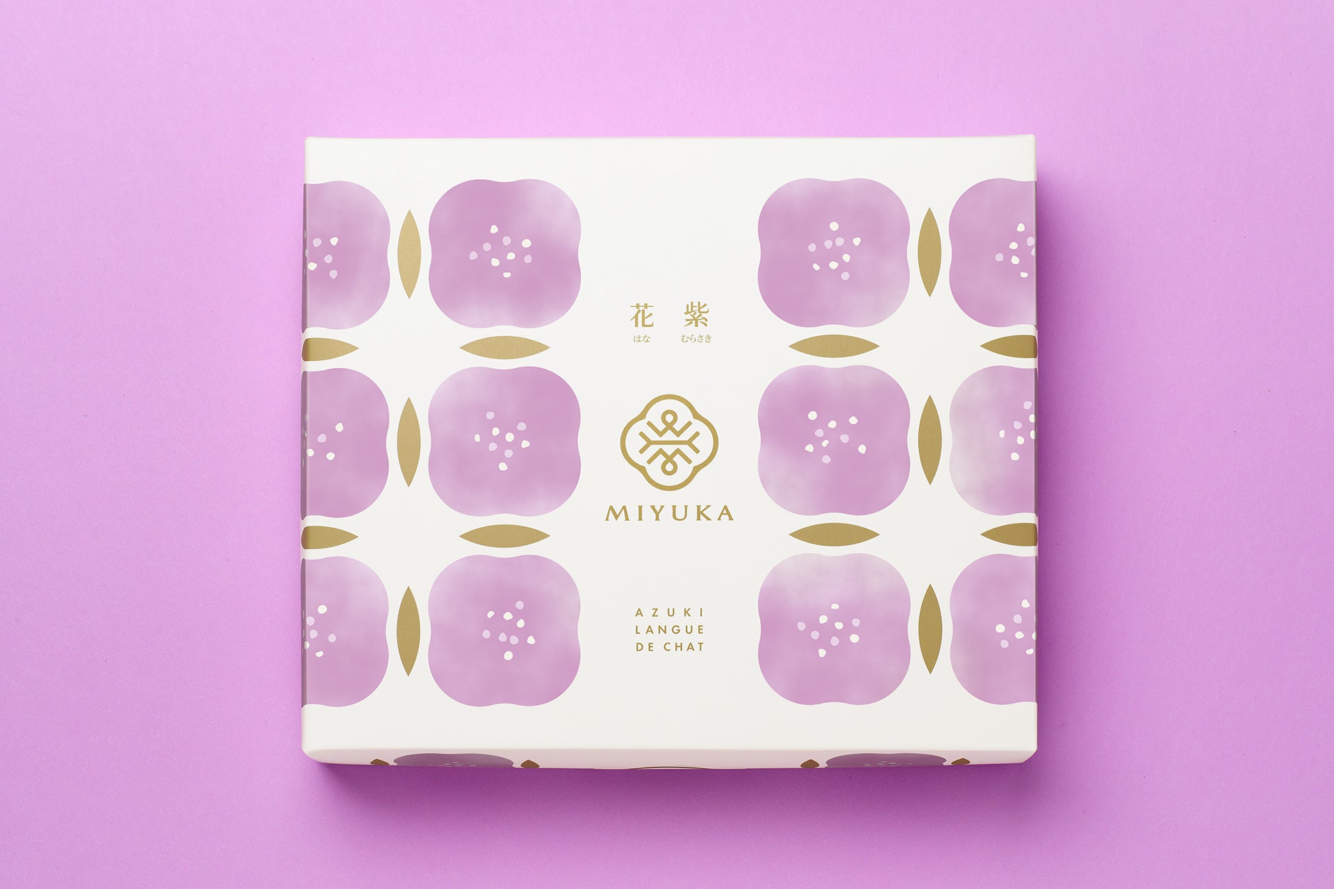 米粉を加え、花のようにひらりと軽い食感に仕上げたあずきのラングドシャは、MIYUKAのロゴをかたどった愛らしい花形が特長です。あずきのやさしい風味が広がる「花紫」は、皆で分けやすい、東京土産にも最適な14枚入りとなっています。MIYUKA グランスタ東京店、MIYUKA エキュート秋葉原店の2店舗限定で販売します。