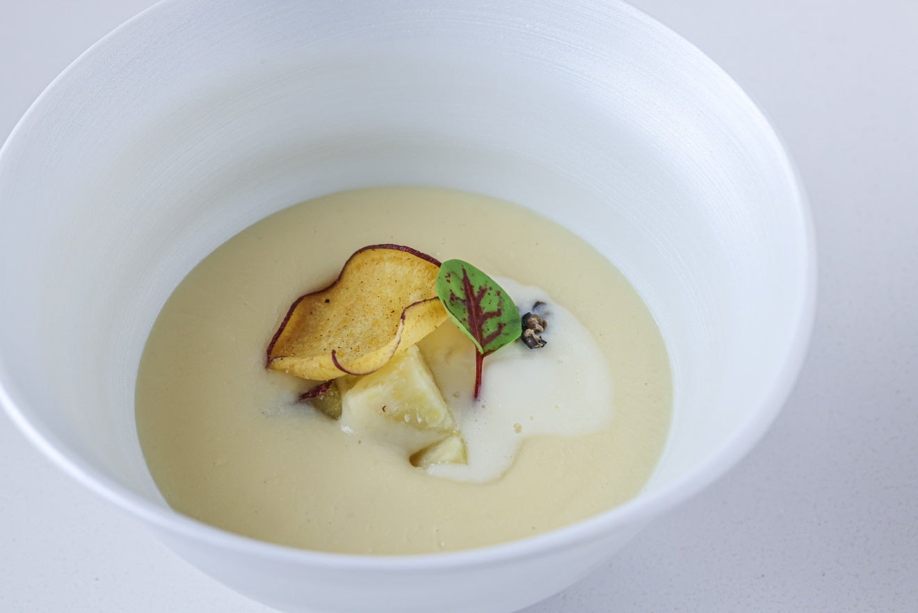 キタアカリのポムピューレと本日の東京野菜を添えて