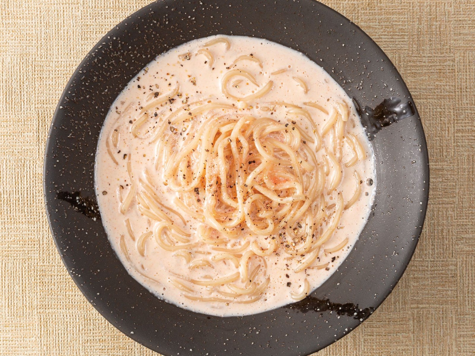 また、こっくりとした味わいが恋しい方には「たらこと生クリームの濃厚ソース」をご用意しました。生クリームを使用した特製ソースがもちもちの生パスタによく絡む、濃厚な一皿です。お好みで卓上の赤山椒をかければ、キリっとした風味が加わり、味の変化もお楽しみいただけます。